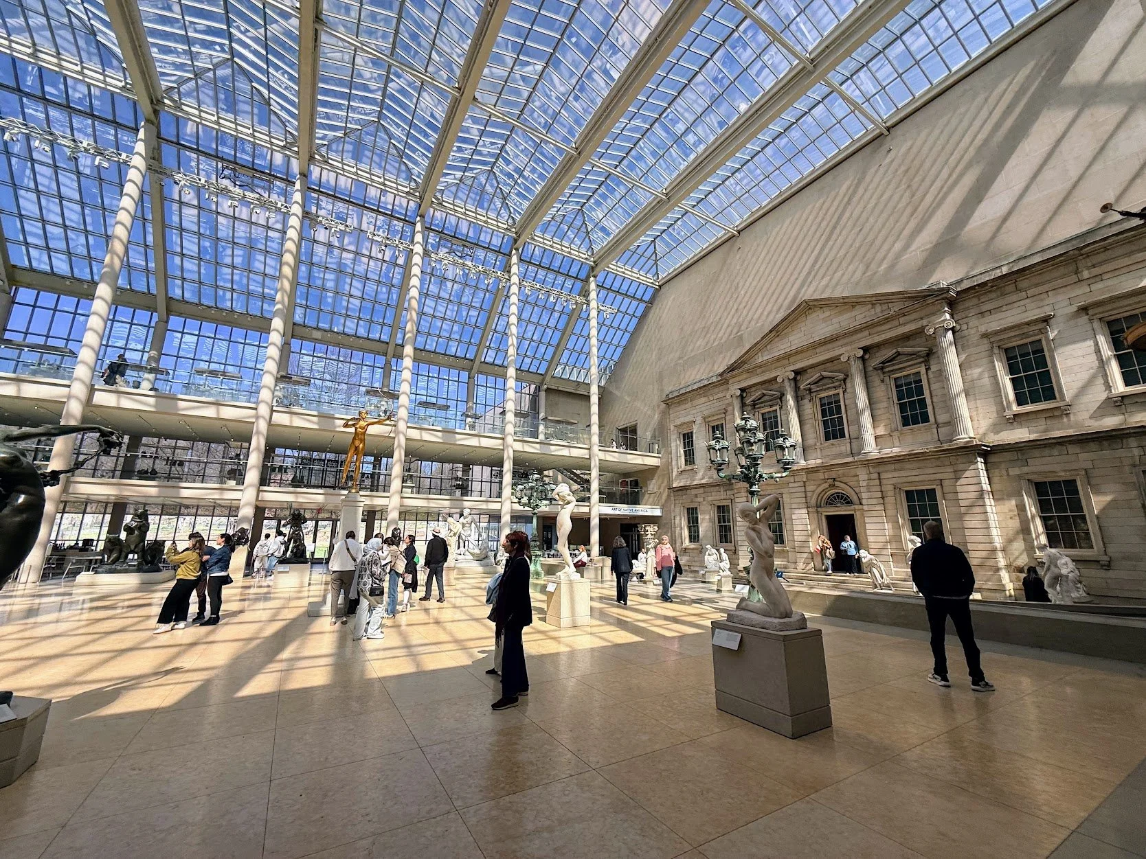From there, we made our way to the American Wing, where the large glass courtyard immediately changes the pace. Filled with sculpture, light, and space to pause, it feels calmer and less crowded than some of the busier galleries. We actually got a little too comfortable there and spent more time than we planned, wandering through the courtyard and surrounding rooms.
