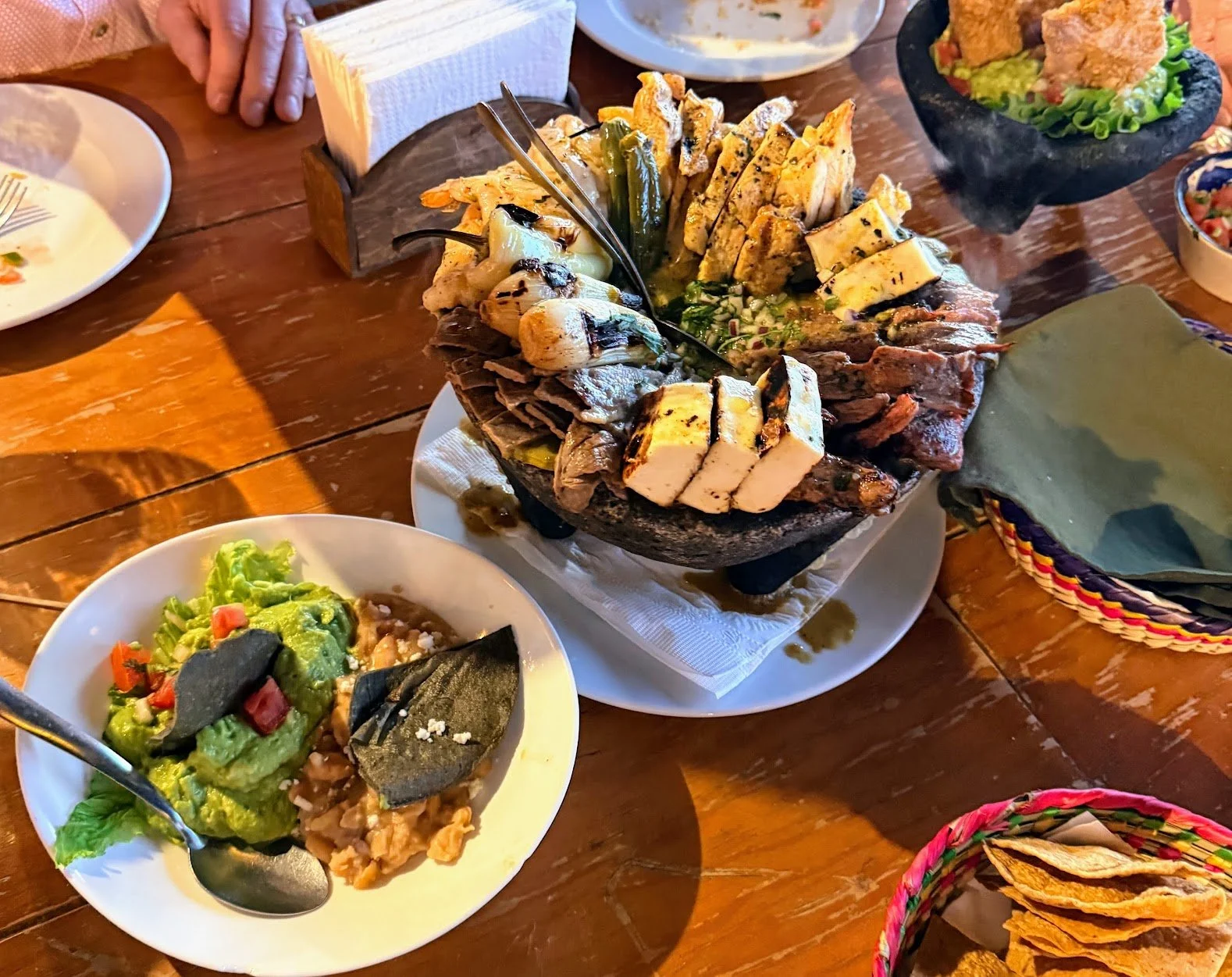 The standout dish at Los Milagros is the Molcajete bowl. This classic Mexican meal features meat or shrimp (or both) served in a heated volcanic rock bowl. It arrives sizzling and stays hot during your meal. Cheese on the side melts into the bowl with the protein, sauce, and vegetables, creating a delicious mix. If you visit, be sure to try the Molcajete!