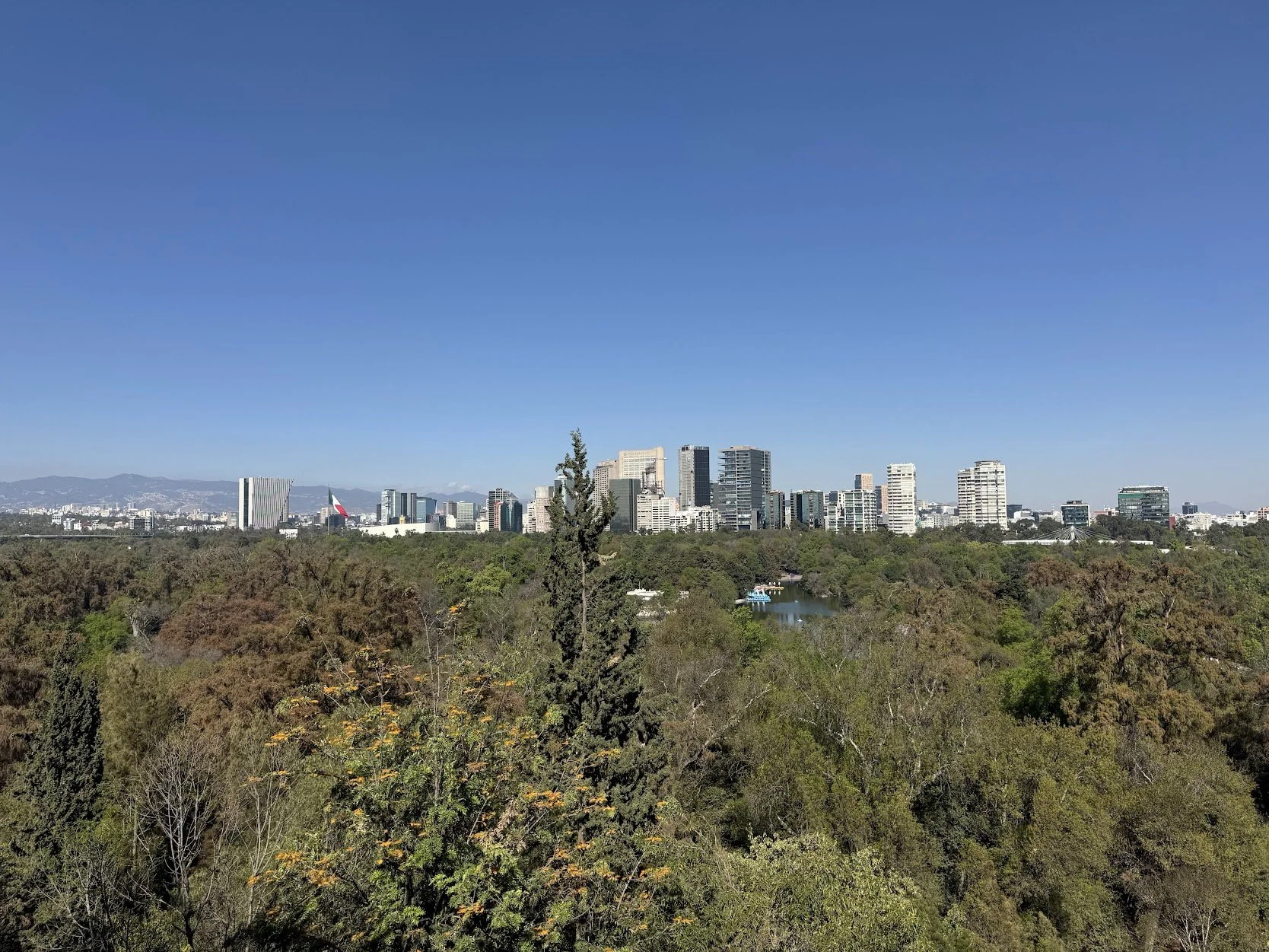 The views of Mexico City become stunning as you walk higher on the hill. This is looking back at the “Reforma” area of Mexico City, a part of the city with beautiful hotels and great restaurants.