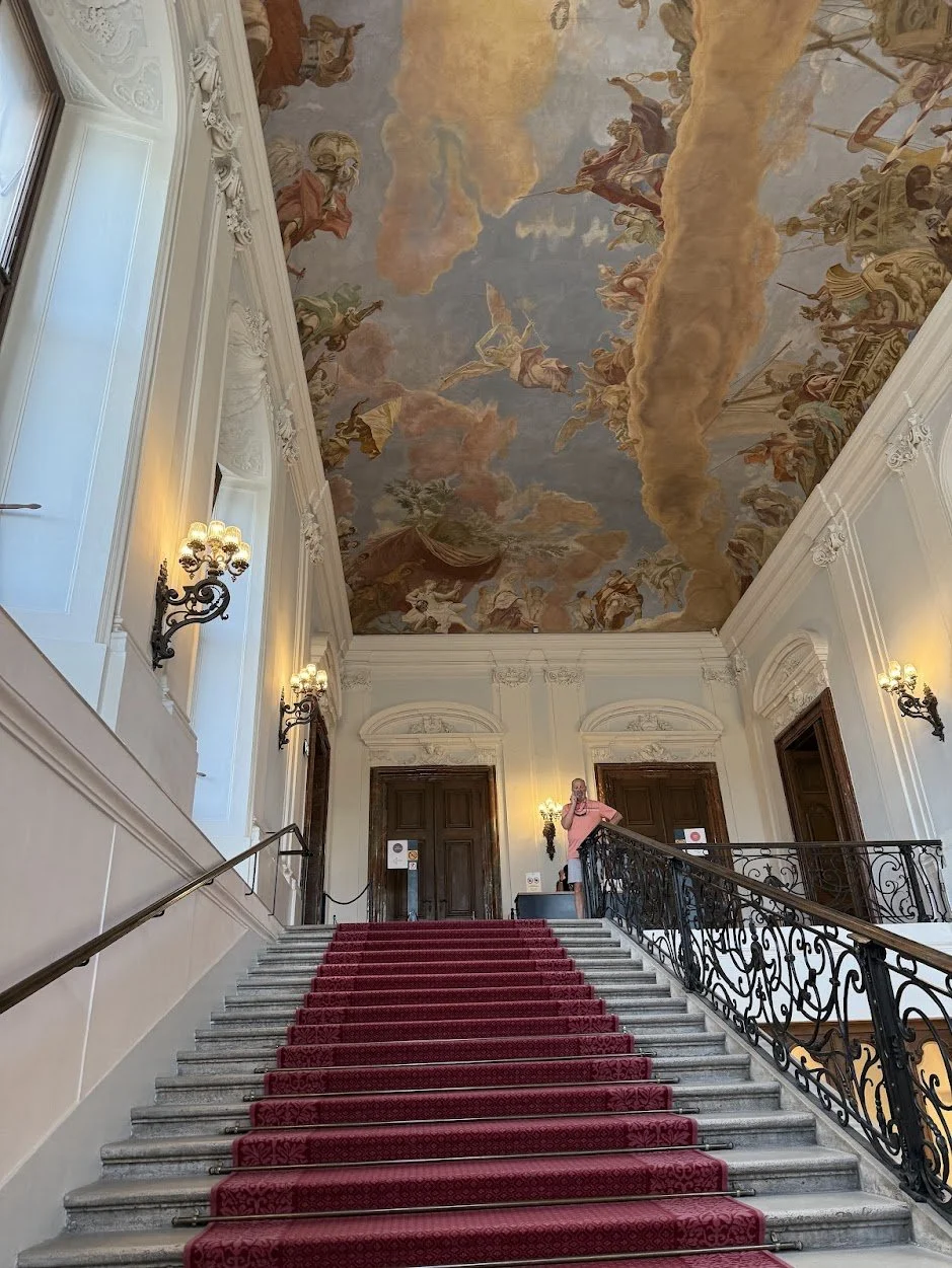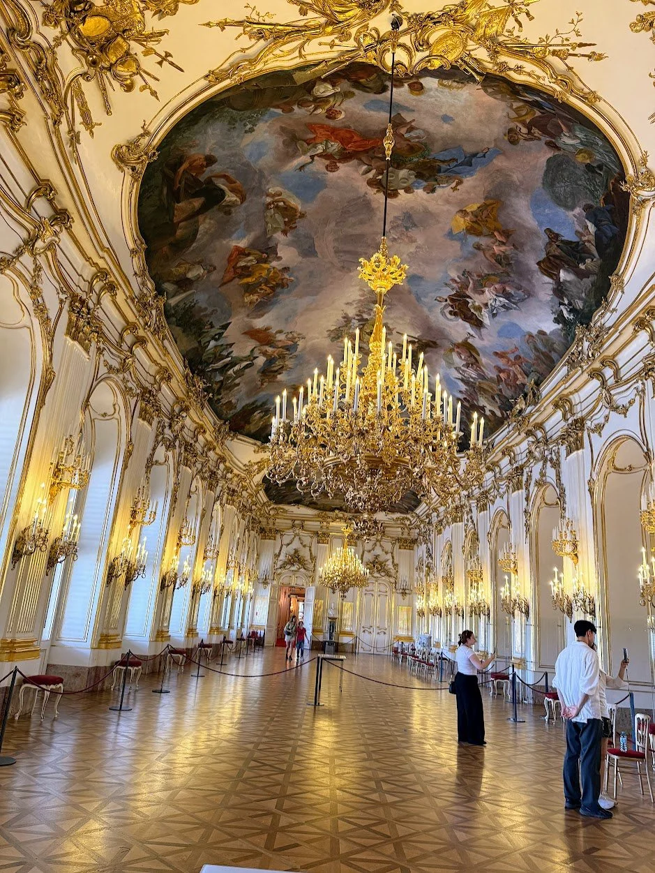 We wandered through the state rooms, where gilded ceilings and crystal chandeliers speak to centuries of imperial power and extravagance. One of the most memorable details? Standing in the same room where six-year-old Mozart once performed for Empress Maria Theresa.