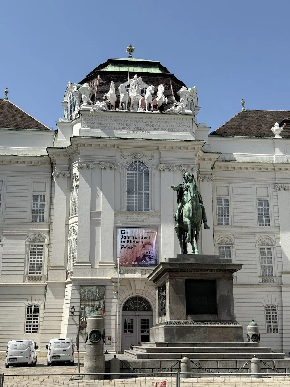 The palace tells a story in layers, as in that the most dramatic addition — the Neue Burg (New Castle) — was started in the late 1800s as part of an ambitious plan to create a grand Imperial Forum. But that vision was never fully realized. In 1914, the assassination of Archduke Franz Ferdinand — the very event that triggered World War I — changed everything. The empire collapsed just a few years later, and construction stopped.